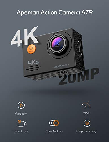 APEMAN A79 Action Camera 4K 20MP WiFi External Microphone 2.4G Remote Control...