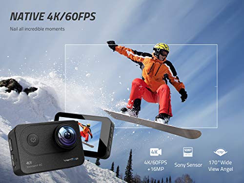 - [Ultra HD 4K Action Camera]: VanTop Moment 4C records 4K/60FPS insanely clear videos and takes 16MP stunning photos. The 170° ultra-wide angle brings you a wider field of view. Perfectly records your adventures while swimming, diving, snorkeling, skiing, skating and more, without missing a single detail!