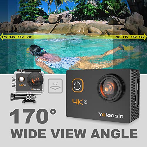 - Yolansin Action Camera Equipped High Quality Waterproof Case and Muti-accessories: The High-quality waterproof case can make this camera work normally for even underwater 40 meters. Dual 1050mAh batteries and multi accessories can meet your needs for any outdoor activities.