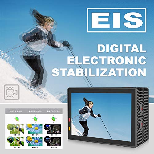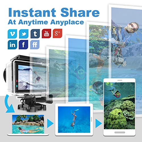 - [Multiple Functions for Great Shots]: This action camera has timer, burst, image rotation, time lapse, loop recording, slow motion and many more features to help you capture unique pictures. Start your creative shooting now! Furthermore, built-in Wi-Fi allows you to share your excitement instantly!