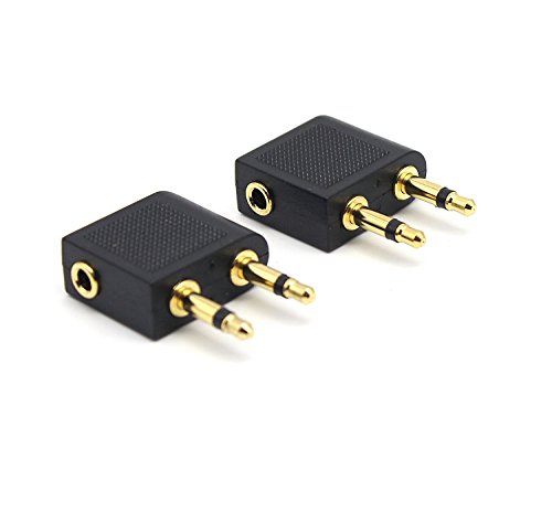 The Alait 2 Pack 3.5mm Gold Plated Airplane Flight Adapter is 2 male to 1 female Headphone Audio adapter that will allow you to use your own headphones on airliners.