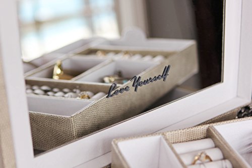 - SPACIOUS bottom drawer slides out to reveal a removable travel case with ample storage for necklaces, bracelets and more.