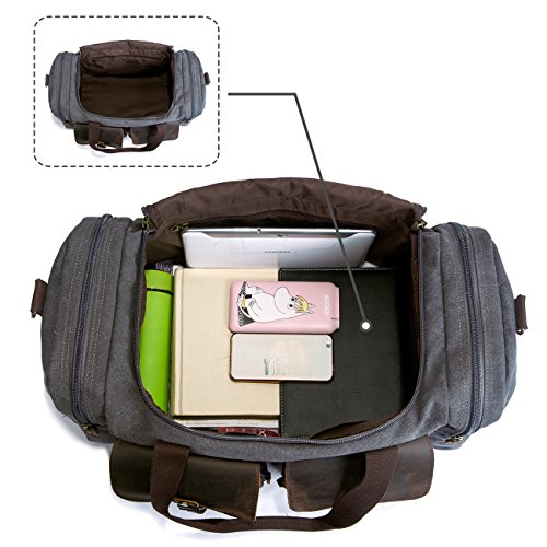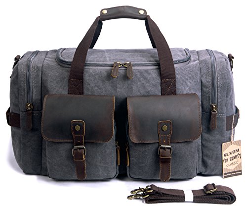 SUVOM Leather Canvas Duffle Bag Weekend Overnight Bag Travel Tote Duffel Luggage...