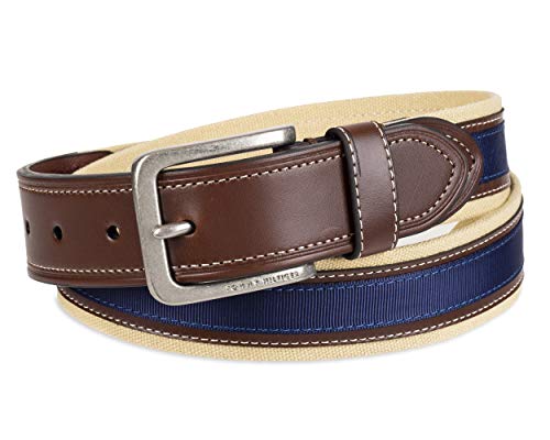 Tommy Hilfiger Men's Casual Fabric Belt, Khaki/Brown/Navy, 34