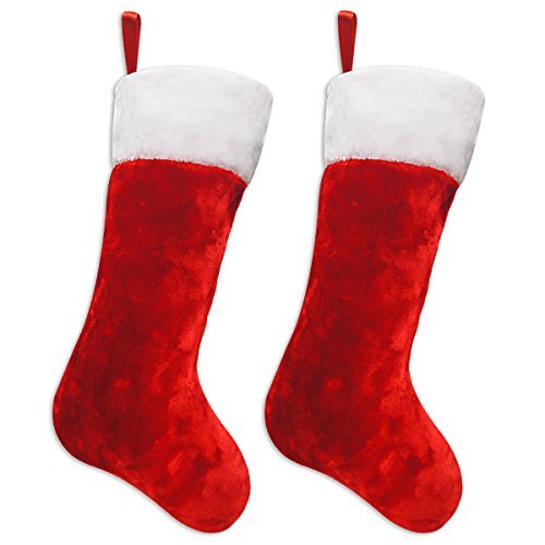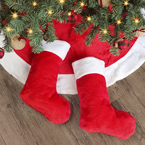 Ivenf Christmas Stockings, 2 Pcs 19 inches Classic Red and White Mercerized...