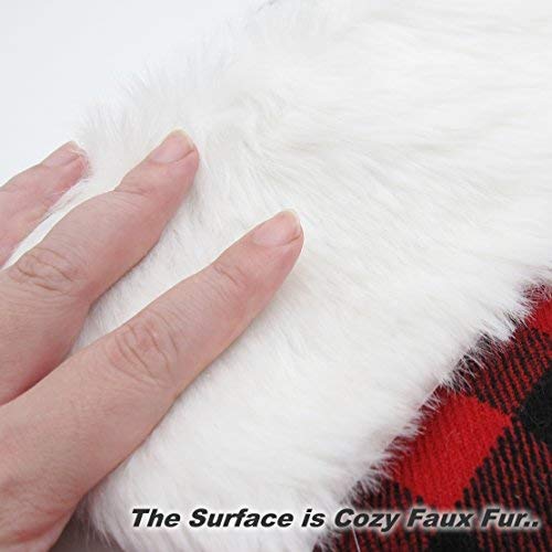 EDLDECCO 20.5 inch Christmas Snowy White Faux Fur Red and Black Plaid...