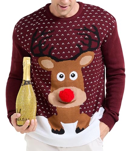 Fashion Essentials-womens Unisex Rudolph Print 3d Nose Pom Pom Christmas Jumper (M,...