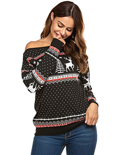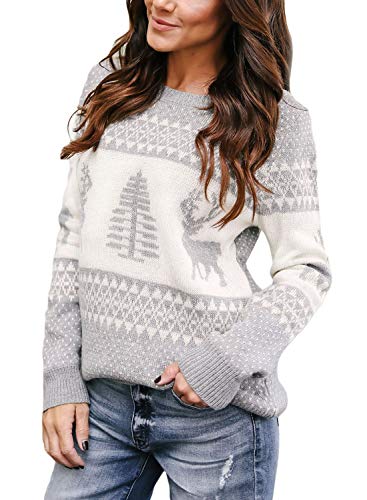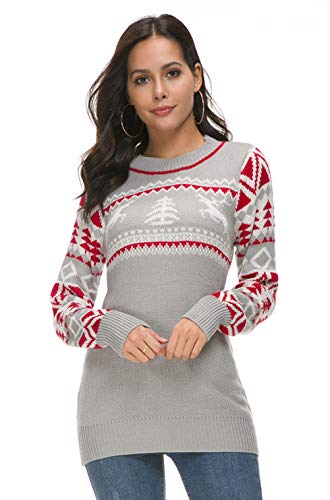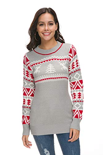 UNibelle Women's Ugly Christmas Sweater Patterns Reindeer Pullover Jumper,S-XXL Grey