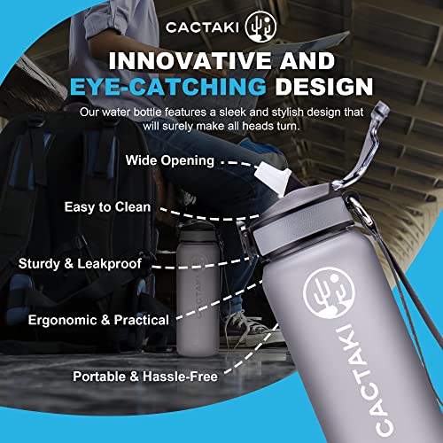 Cactaki 32oz Water Bottle With Time Marker, BPA Free, Non-Toxic, Leakproof, Durable...