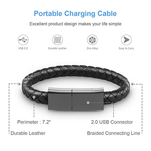 Auzev USB Charging Cable Bracelet Fashion Wrist Data Charger Cord Leather Cuff...