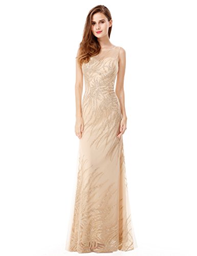 Ever-Pretty Womens Sleeveless Floor Length Glitter Prom Dress 8 US Gold