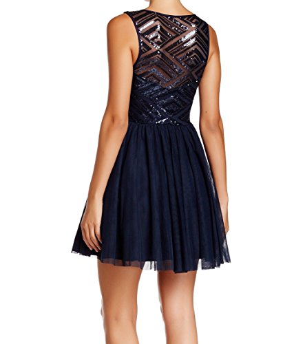 Trixxi Junior's Sequin Mesh Short Prom Dress, Navy, 3