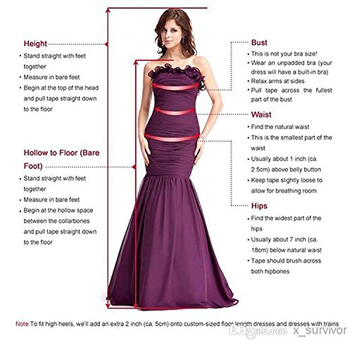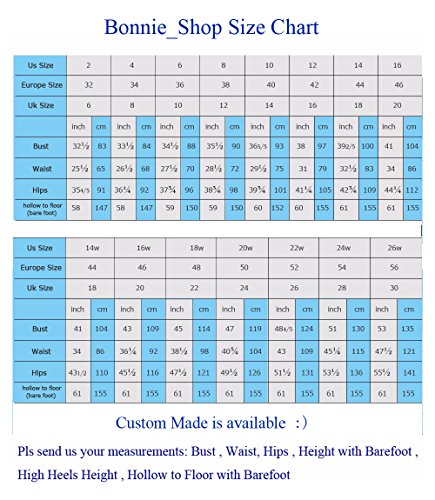 - Custom-made Service is available without any Extra Cost.Please refer to our Size Chart and Color Chart on the left,Email us your Exact Measurements of bust,waist,hips,hollow to floor,Height(barefoot)and Color Number after you placed the order.(Standard Size Free Return)