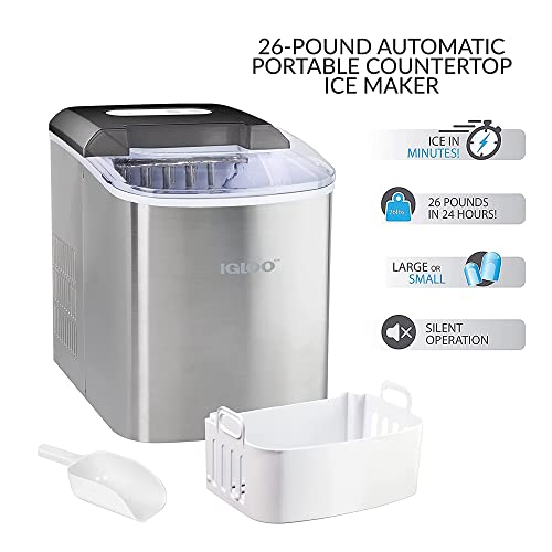 Igloo ICEB26SS 26-Pound Automatic Portable Countertop Ice Maker Machine, Stainless Steel