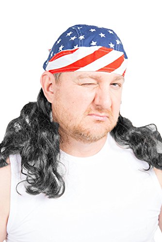 The Freebird Mullet Wig Skull Cap Red, White, Blue, Black Hair One...