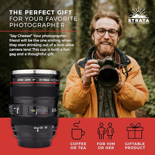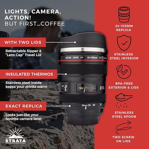 STRATA CUPS Camera Lens Coffee Mug -13.5oz, SUPER BUNDLE! (2 LIDS +...