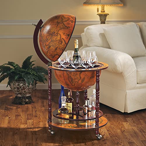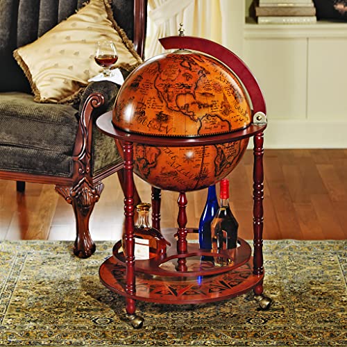 This Italian-style globe bar is masterfully crafted with quality hardwoods using the same 16th century Italian maps usually found only on true antique furniture. The Design Toscano Sixteenth-Century Italian Replica Globe Bar is wrapped with replica 16th-century nautical maps from the National Museum of Science, Florence. Impress your guests with the old world charm of Italian style rolling globe bar caddy liquor cabinet.