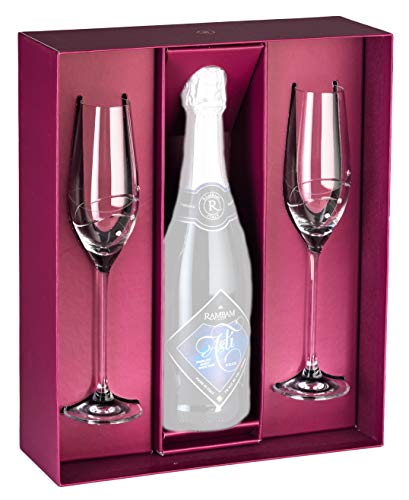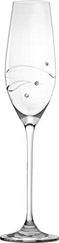 This beautiful handmade set of champagne flutes is ideal to use for special occasions or just to give as a gift. It carries a beautiful design on the glass surface. This glass set is simply elegant.