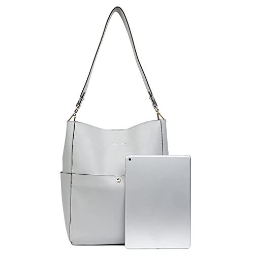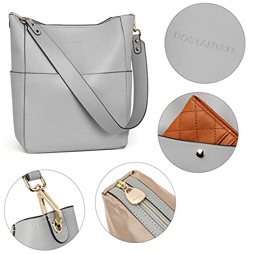 BOSTANTEN Women's Leather Designer Handbags Tote Purses Shoulder Bucket Bags Grey