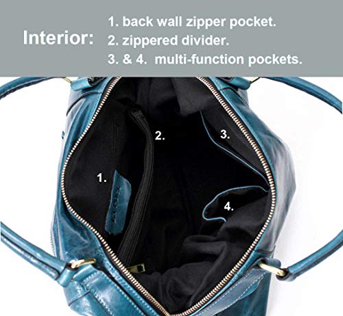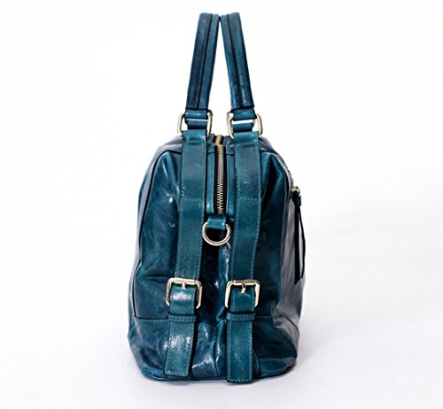La Poet Women's Waxed Cowhide Hobo Satchel Shoulder Bag (Teal Green)