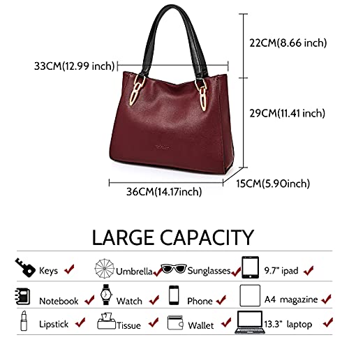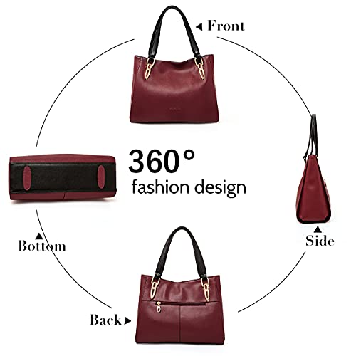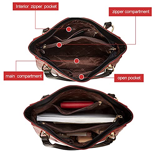 LAORENTOU Women's Bag Leather Handbag Lady Shoulder Purse Cowhide Tote (red)