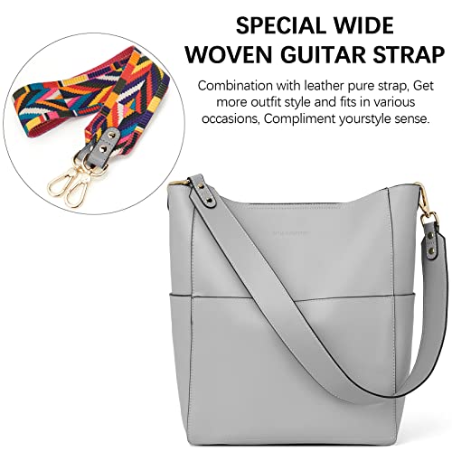 - [Feature]: Two shoulder straps design, one of them is leather strap, another is woven guitar strap, you can according to your liking change strap style, to match your outfit in all seasons! The two straps approximately 10.23 inch, two straps can be changed out to use as a shoulder bag or handbag.