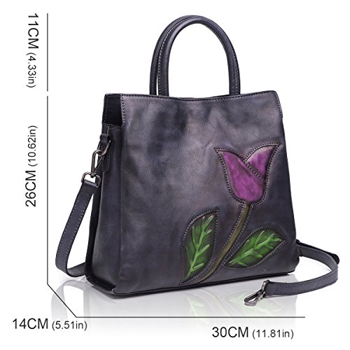 - [Durable Material]: This tote shoulder bags made of High-quality durable cow leather + exquisite tulips floral design + nice gift dust bag packing + superb craftmanship = a classy womens tote shoulder bag for daily use or gift idea.