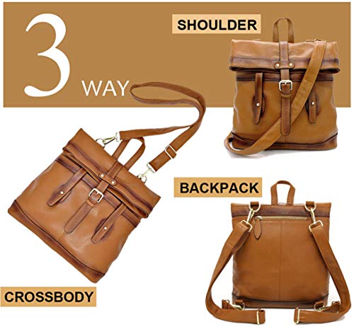 La Poet Women’s Genuine Leather Convertible Shoulder Crossbody Bag Tote Backpack