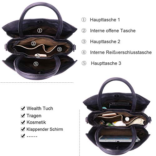 Heshe Leather Shoulder Bag Womens Tote Top Handle Handbags Cross Body Bags...