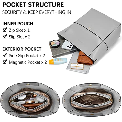 NAWO Women's Leather Designer Handbags Shoulder Tote Top-handle Bag Clutch Purse Gray