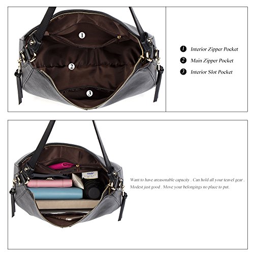 - 3-WEARING WAYS: Adjustable shoulder strap (Up to 47") makes handbag has more choices to carry on (Shoulder, Cross-body or Tote bag); Ideal for matching your outfits when traveling, Working, Dating or Shopping