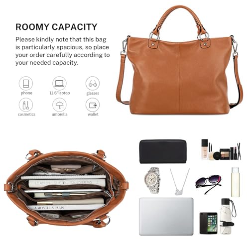 Kattee Women's Soft Genuine Leather 3-Way Satchel Tote Handbag Brown