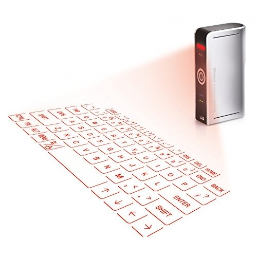 The Celluon Epic Ultra-Portable Full-Size Virtual Keyboard is a mobile projection keyboard that doubles as a virtual multi-touch mouse. With a single flick of switch, Epic virtual keyboard projects a full-size QWERTY keyboard in a safe form of laser. It is easily paired with any smart devices by simplified Bluetooth capability.