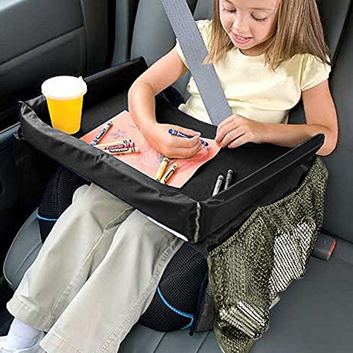 - KEEPS YOUR KIDS ENTERTAINED WHILE TRAVELING: Kids stay happy on car, plane, train or bus rides! This tray makes snacking, eating & playing easy. Mesh side storage pockets keep crayons, paper & books right at little fingertips. Kids can easily reach the things they need!
