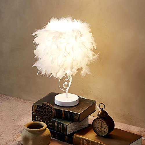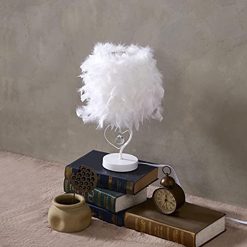 Surpars House Heart Shape White Feather Deco Table Lamp Crystal Bedside Table...