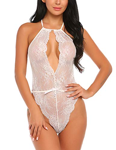 Avidlove Lingerie for Women Teddy One Piece Lace Babydoll Bodysuit White S