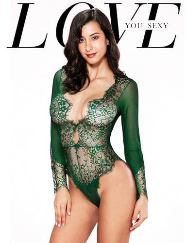 - A pretty-meets-comfy quality-made bodysuit in one, enhanced with allover floral lace in front, and a high-cut leg silhouette and upper back cutout. Full-coverage long sleeves mean you can comfortably wear it anywhere in multi occations such as wedding Anniversary, Valentine's Day, Honeymoon trip, Lingerie show party, Halloween costume etc.