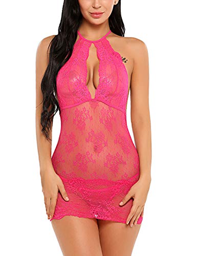 Avidlove Women Babydoll Lingerie Lace Chemise Halter Nightwear Teddy Dress Rose Red...