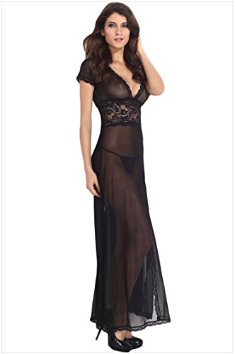Amoretu Womens Sheer Lace V Neck Gown Dress Maxi Lingerie Set, Black,...
