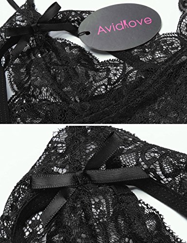 Avidlove Women Nightwear Lace Babydoll Bralette Lingerie Mini Teddy Mesh Chemise Black...