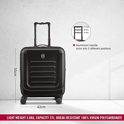 The Victorinox Luggage Spectra 2.0 Dual-Access Extra Capacity Carry-On suitcase comes with a front zippered, quick-access door with organizational panel offers on-the-go access to the things needed most while traveling such as up to a 15.6 inch/39 centimeter laptop, tablet, smartphone, passport, tickets and more. Dual-access construction allows the case to be packed two ways – through the front quick-access door or through the main compartment opening.
