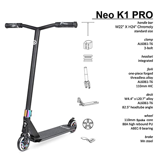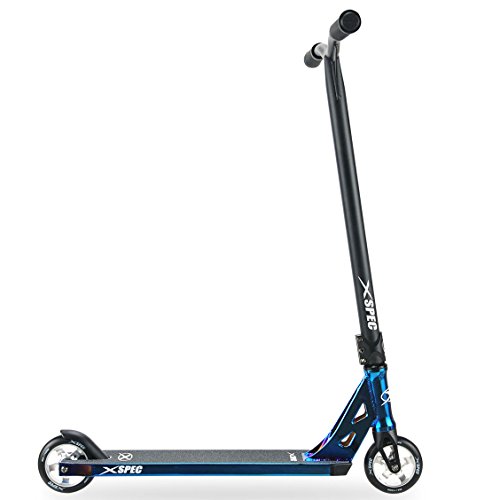 Xspec Pro Stunt Kick Scooter, Unique Oil Slick Anodized Design, Blue Neo...
