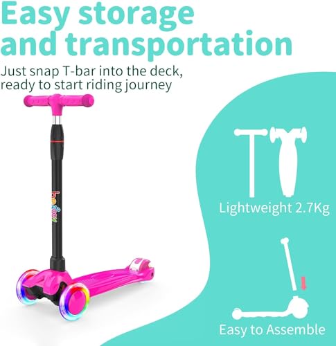 BELEEV Kick Scooter for Kids 3 Wheel Scooter, 4 Adjustable Height, Lean...