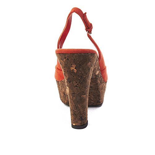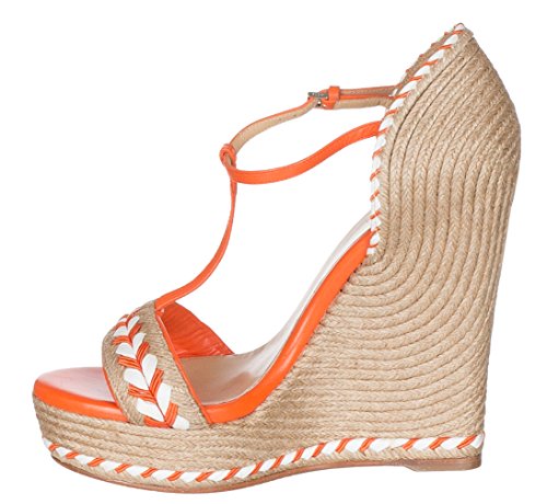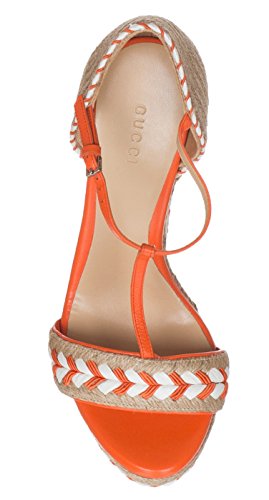Gucci Women's Neon Orange Leather T-Strap Platform Sandal Shoes, Orange, 8