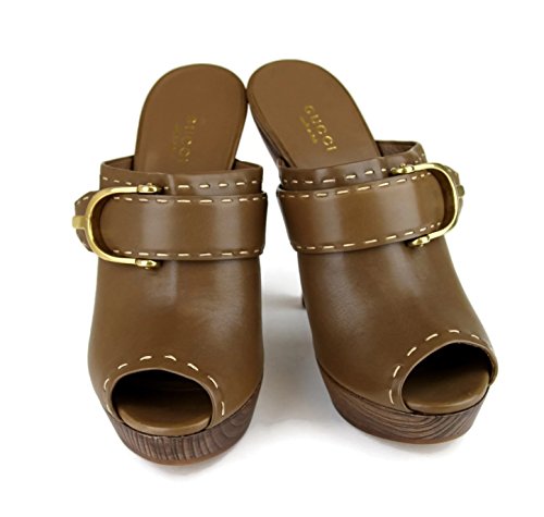 Gucci Brown Leather Clog Stirrup Platform Sandals 310351 EU 38 / US...