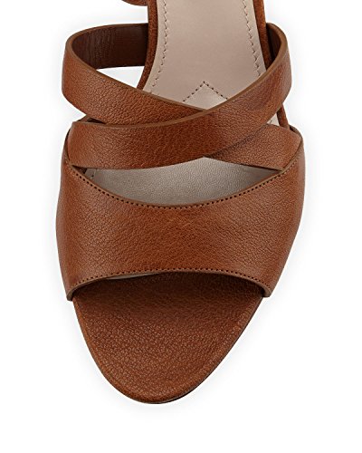 Miu Miu Leather Ankle-Wrap Gladiator Sandal, Cuoio 38.5