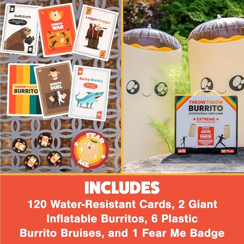 - The World's First Dodgeball Card Game: In this Extreme Outdoor Edition, the mayhem becomes GIGANTIC. Collect cards. Play your hand. Throw giant, inflatable burritos at your friends!