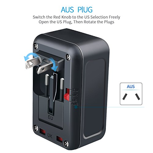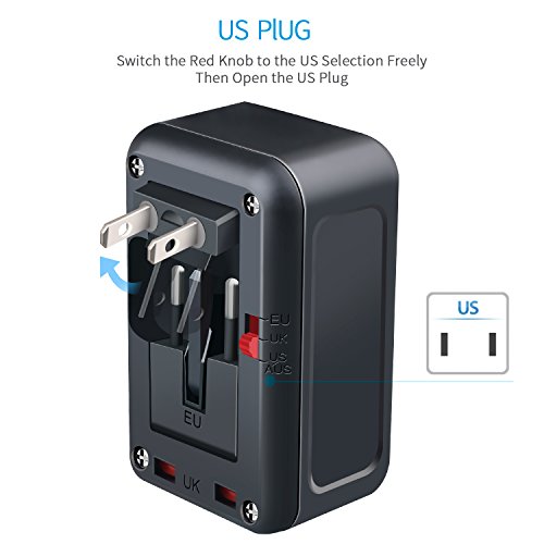 - [UNIVERSAL WORLDWIDE ADAPTER]: Universal worldwide multifunctional travel adapter, with US/UK/AU/EU/Asia AC outlet plugs, covering more than 150 most commonly visited countries, such as USA, Canada, UK, Germany, France, Italy, Spain, Japan, Korea, HongKong, Indonesia, Australia, New Zealand and etc, all in one travel adapter, good choice for your worldwide travelling.