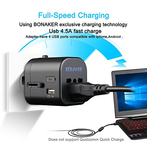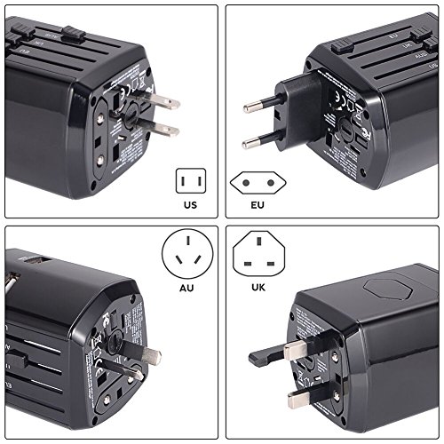 - OVER 150 COUNTRIES: All in one International Power Adapter with 4 xUSB ports and 1 Universal AC Socket, enough to simultaneously charge 5 devices. The travel adapter Covers over 150 countries like USA, Canada, Mexico, Germany, Japan, China, Korea, India, Italy, Brazil, Europe, Asia, the Middle East,Etc.