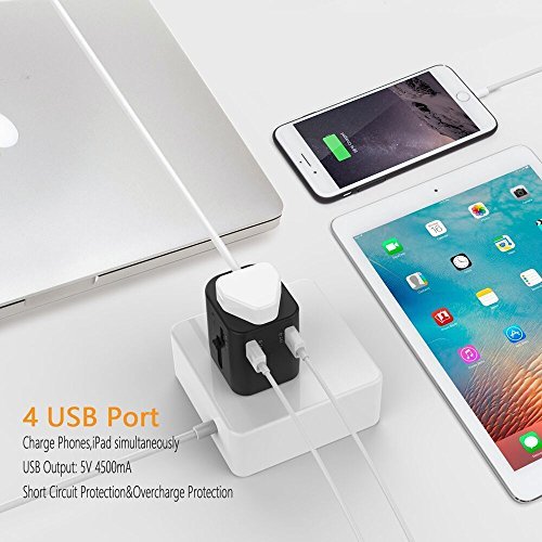 Travel Adapter 4.5A 4 USB Charging Worldwide All in One Universal Power...